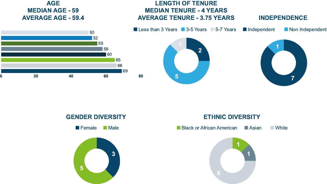 ✔ | Half of our directors are diverse | ✔ | No supermajority vote to remove directors or amend Charter or Bylaws | ||||||||