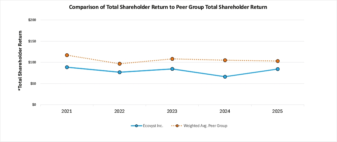 (5) | The peer group for 2025 used in this calculation is defined as the “2025 Compensation Peer Group” on page 36. The adjustments to the peer group for 2025 approved in October 2024 were the removal of Chase Corporation, GCP Applied Technologies and Livent following their acquisition, the removal of NN, Inc. and CSW Industrials, Inc. given limited industry relevance, and the addition of AirBoss of America Corp. The returns of each issuer of the group were weighted according to the respective issuers’ stock market capitalization at the beginning of the period for which a return is indicated. |