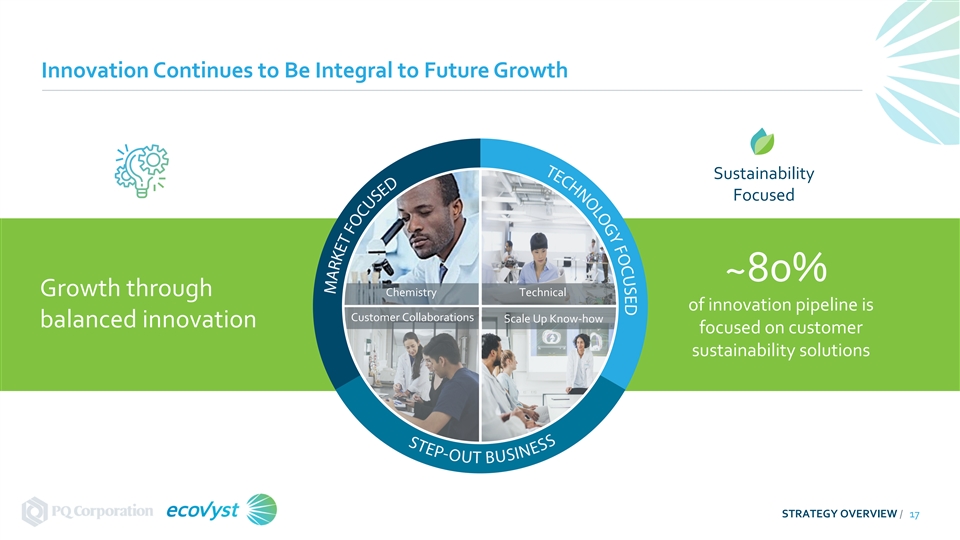 Innovation Continues to Be Integral to Future Growth Sustainability Focused ~80% Growth through Chemistry Technical of innovation pipeline is Customer Collaborations Scale Up Know-how balanced innovation focused on customer sustainability solutions STRATEGY OVERVIEW / 17Innovation Continues to Be Integral to Future Growth Sustainability Focused ~80% Growth through Chemistry Technical of innovation pipeline is Customer Collaborations Scale Up Know-how balanced innovation focused on customer sustainability solutions STRATEGY OVERVIEW / 17