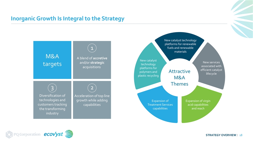 Inorganic Growth Is Integral to the Strategy New catalyst technology platforms for renewable fuels and renewable 1 materials M&A A blend of accretive New catalyst New services and/or strategic technology targets associated with acquisitions platforms for efficient catalyst polymers and Attractive lifecycle plastic recycling M&A Themes 3 2 Diversification of Acceleration of top line technologies and growth while adding Expansion of Expansion of virgin customers tracking Treatment Services acid capabilities capabilities capabilities and reach the transforming industry STRATEGY OVERVIEW / 18Inorganic Growth Is Integral to the Strategy New catalyst technology platforms for renewable fuels and renewable 1 materials M&A A blend of accretive New catalyst New services and/or strategic technology targets associated with acquisitions platforms for efficient catalyst polymers and Attractive lifecycle plastic recycling M&A Themes 3 2 Diversification of Acceleration of top line technologies and growth while adding Expansion of Expansion of virgin customers tracking Treatment Services acid capabilities capabilities capabilities and reach the transforming industry STRATEGY OVERVIEW / 18
