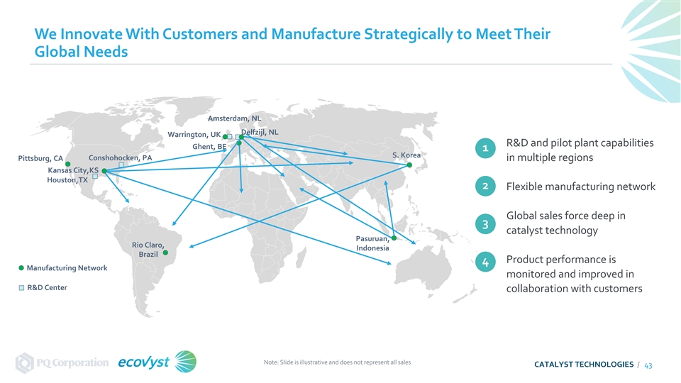 We Innovate With Customers and Manufacture Strategically to Meet Their Global Needs Amsterdam, NL Delfzijl, NL Warrington, UK R&D and pilot plant capabilities Ghent, BE 1 S. Korea Conshohocken, PA Pittsburg, CA in multiple regions Kansas City,KS Houston,TX 2 Flexible manufacturing network Global sales force deep in 3 catalyst technology Pasuruan, Rio Claro, Indonesia Brazil Product performance is 4 Manufacturing Network monitored and improved in R&D Center collaboration with customers Note: Slide is illustrative and does not represent all sales CATALYST TECHNOLOGIES / 43We Innovate With Customers and Manufacture Strategically to Meet Their Global Needs Amsterdam, NL Delfzijl, NL Warrington, UK R&D and pilot plant capabilities Ghent, BE 1 S. Korea Conshohocken, PA Pittsburg, CA in multiple regions Kansas City,KS Houston,TX 2 Flexible manufacturing network Global sales force deep in 3 catalyst technology Pasuruan, Rio Claro, Indonesia Brazil Product performance is 4 Manufacturing Network monitored and improved in R&D Center collaboration with customers Note: Slide is illustrative and does not represent all sales CATALYST TECHNOLOGIES / 43