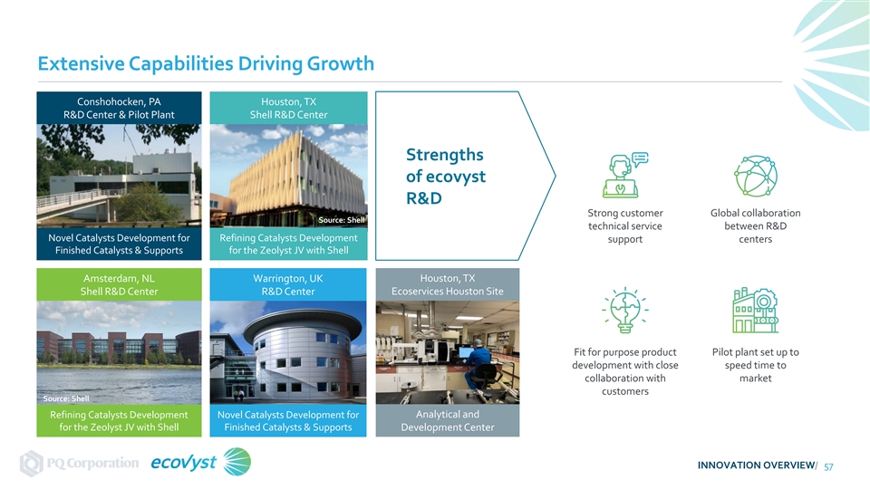 Extensive Capabilities Driving Growth Conshohocken, PA Houston, TX R&D Center & Pilot Plant Shell R&D Center Strengths of ecovyst R&D Strong customer Global collaboration Source: Shell technical service between R&D Novel Catalysts Development for Refining Catalysts Development support centers Finished Catalysts & Supports for the Zeolyst JV with Shell Amsterdam, NL Warrington, UK Houston, TX Ecoservices Houston Site Shell R&D Center R&D Center Fit for purpose product Pilot plant set up to development with close speed time to collaboration with market customers Source: Shell Analytical and Refining Catalysts Development Novel Catalysts Development for for the Zeolyst JV with Shell Finished Catalysts & Supports Development Center INNOVATION OVERVIEW/ 57Extensive Capabilities Driving Growth Conshohocken, PA Houston, TX R&D Center & Pilot Plant Shell R&D Center Strengths of ecovyst R&D Strong customer Global collaboration Source: Shell technical service between R&D Novel Catalysts Development for Refining Catalysts Development support centers Finished Catalysts & Supports for the Zeolyst JV with Shell Amsterdam, NL Warrington, UK Houston, TX Ecoservices Houston Site Shell R&D Center R&D Center Fit for purpose product Pilot plant set up to development with close speed time to collaboration with market customers Source: Shell Analytical and Refining Catalysts Development Novel Catalysts Development for for the Zeolyst JV with Shell Finished Catalysts & Supports Development Center INNOVATION OVERVIEW/ 57