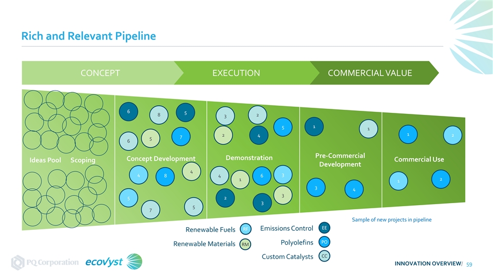 Balanced Development Portfolio Approach New Market Focus Technology Focus Step-Out Business Focus 1 3 1 2 1 4 3 4 • Silica-based product for • Next generation custom • Advanced ion exchange for particulate matter reduction chemical catalysts metals removal & recovery Market/ • Zeolite-based diesel emission • Next generation zeolite based • Customized zeolite-based Customer control catalysts for new dewaxing catalysts catalysts for large refinery applications customers • Process development for • Sulfuric acid for electronics improved efficiencies and • Enhanced refinery offerings 1 2 industry reduced waste utilizing sulfur competency Current Technology/ New Product INNOVATION OVERVIEW/ 58Balanced Development Portfolio Approach New Market Focus Technology Focus Step-Out Business Focus 1 3 1 2 1 4 3 4 • Silica-based product for • Next generation custom • Advanced ion exchange for particulate matter reduction chemical catalysts metals removal & recovery Market/ • Zeolite-based diesel emission • Next generation zeolite based • Customized zeolite-based Customer control catalysts for new dewaxing catalysts catalysts for large refinery applications customers • Process development for • Sulfuric acid for electronics improved efficiencies and • Enhanced refinery offerings 1 2 industry reduced waste utilizing sulfur competency Current Technology/ New Product INNOVATION OVERVIEW/ 58