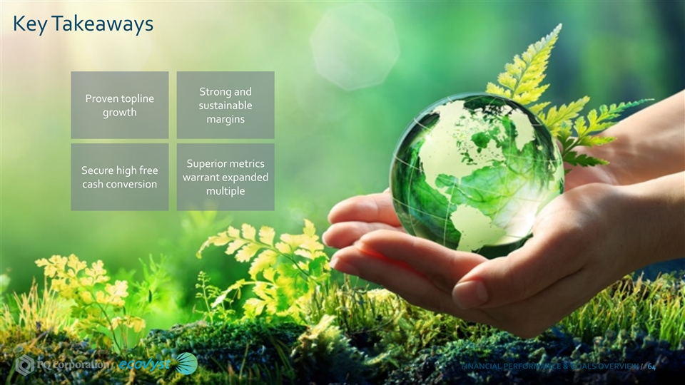 Key Takeaways Strong and Proven topline sustainable growth margins Superior metrics Secure high free warrant expanded cash conversion multiple FINANCIAL PERFORMANCE & GOALS OVERVIEW / 64Key Takeaways Strong and Proven topline sustainable growth margins Superior metrics Secure high free warrant expanded cash conversion multiple FINANCIAL PERFORMANCE & GOALS OVERVIEW / 64