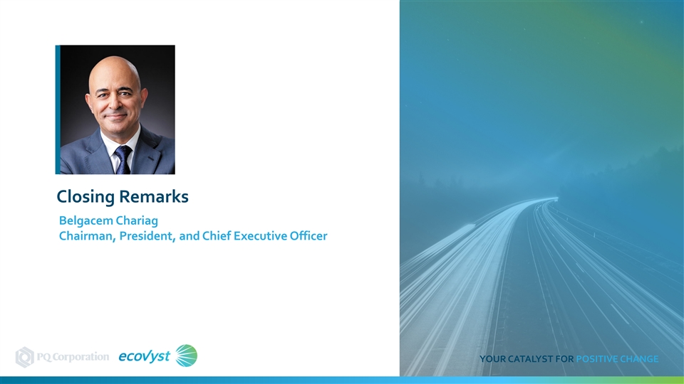 Closing Remarks Belgacem Chariag Chairman, President, and Chief Executive Officer YOUR CATALYST FOR POSITIVE CHANGEClosing Remarks Belgacem Chariag Chairman, President, and Chief Executive Officer YOUR CATALYST FOR POSITIVE CHANGE