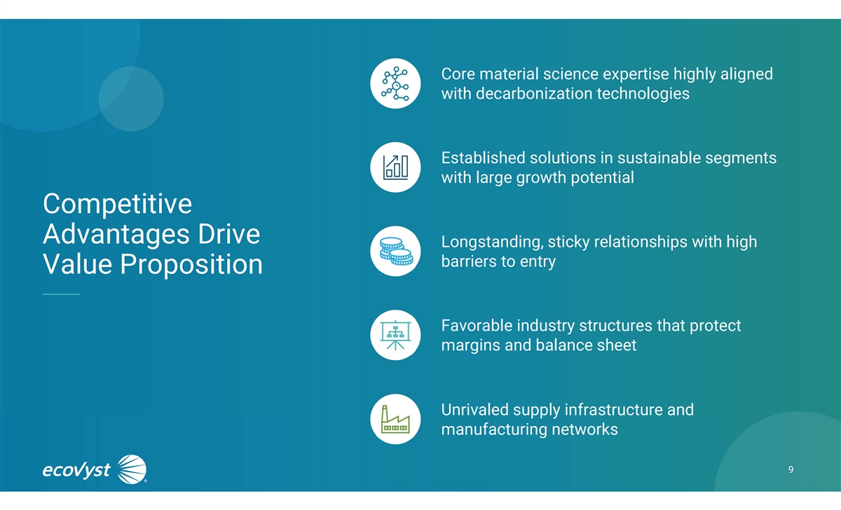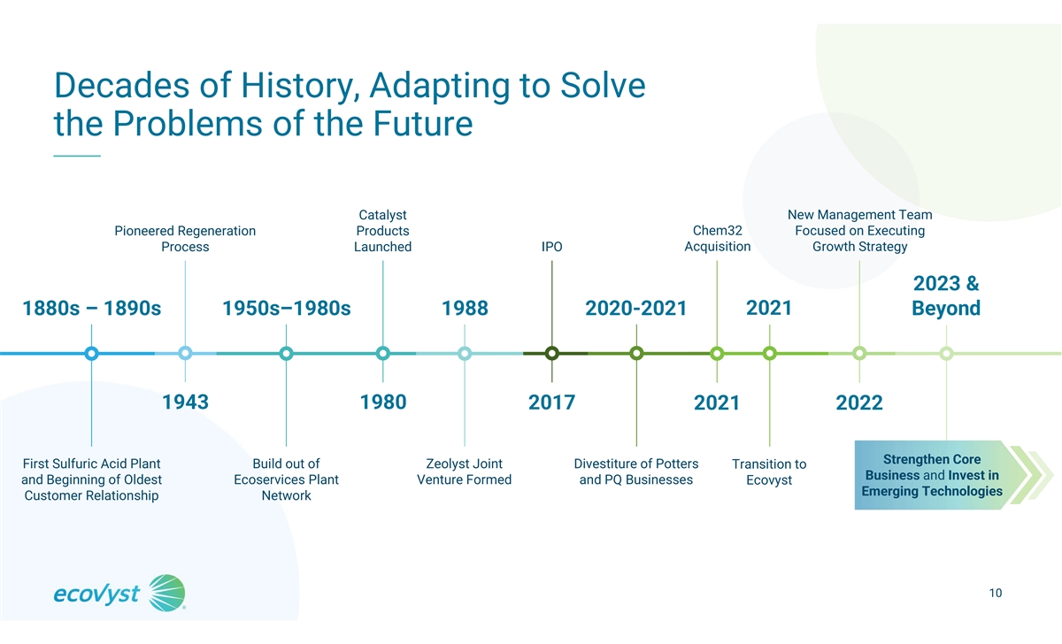 Core material science expertise highly aligned with decarbonization technologies Established solutions in sustainable segments with large growth potential Competitive Advantages Drive Longstanding, sticky relationships with high barriers to entry Value Proposition Favorable industry structures that protect margins and balance sheet Unrivaled supply infrastructure and manufacturing networks 9