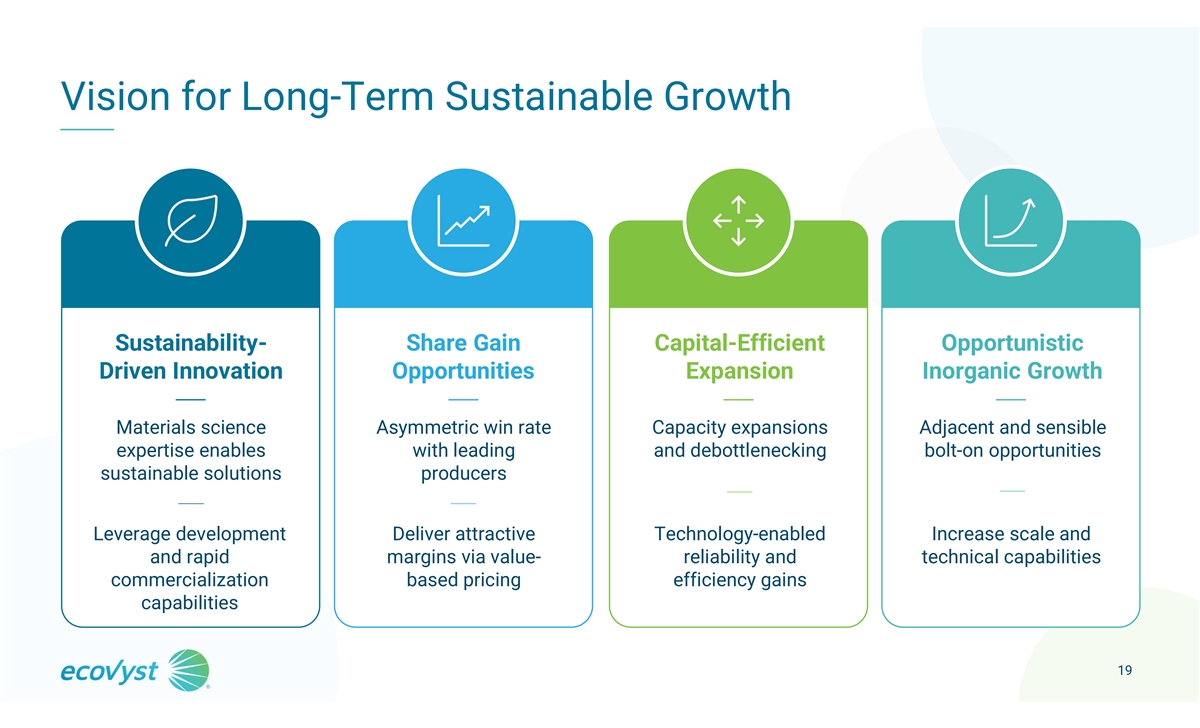 Vision for Long-Term Sustainable Growth Sustainability- Share Gain Capital-Efficient Opportunistic Driven Innovation Opportunities Expansion Inorganic Growth Materials science Asymmetric win rate Capacity expansions Adjacent and sensible expertise enables with leading and debottlenecking bolt-on opportunities sustainable solutions producers Leverage development Deliver attractive Technology-enabled Increase scale and and rapid margins via value- reliability and technical capabilities commercialization based pricing efficiency gains capabilities 19