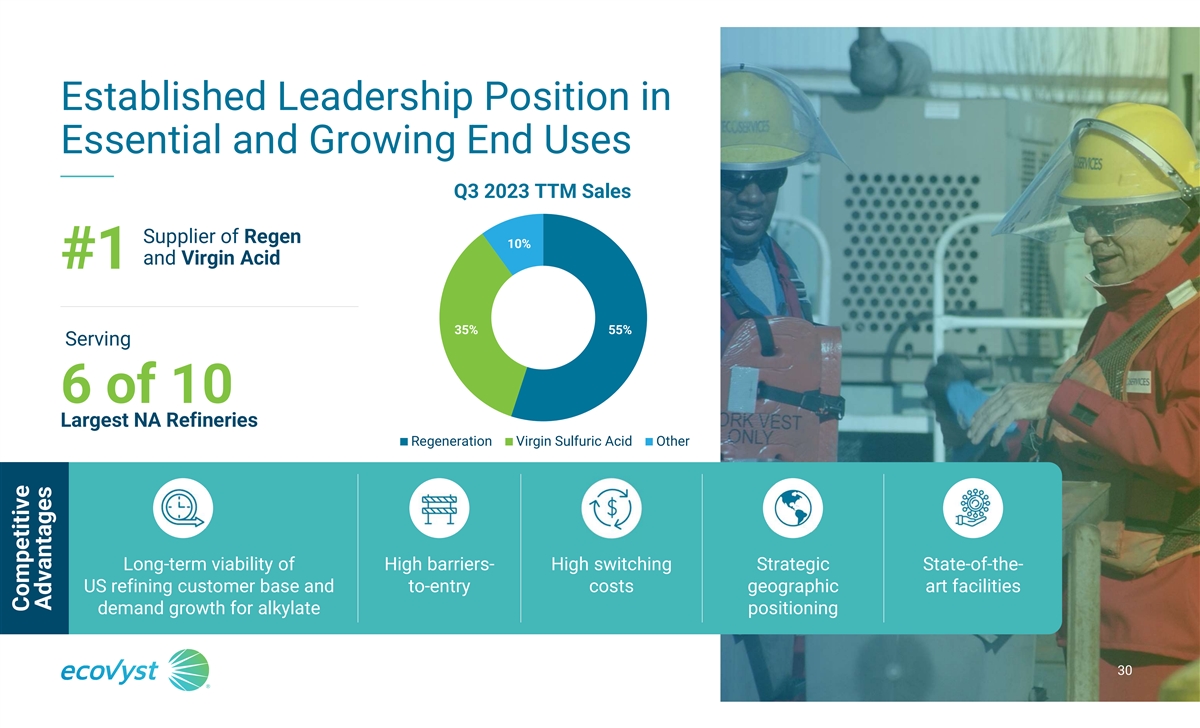 Established Leadership Position in Essential and Growing End Uses Q3 2023 TTM Sales Supplier of Regen 10% and Virgin Acid #1 35% 55% Serving 6 of 10 Largest NA Refineries Regeneration Virgin Sulfuric Acid Other Long-term viability of High barriers- High switching Strategic State-of-the- US refining customer base and to-entry costs geographic art facilities demand growth for alkylate positioning 30 Competitive Advantages