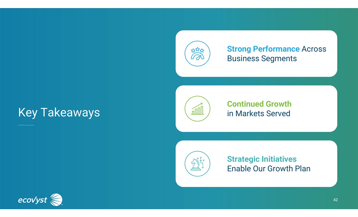 Strong Performance Across Business Segments Continued Growth in Markets Served Key Takeaways Strategic Initiatives Enable Our Growth Plan 42