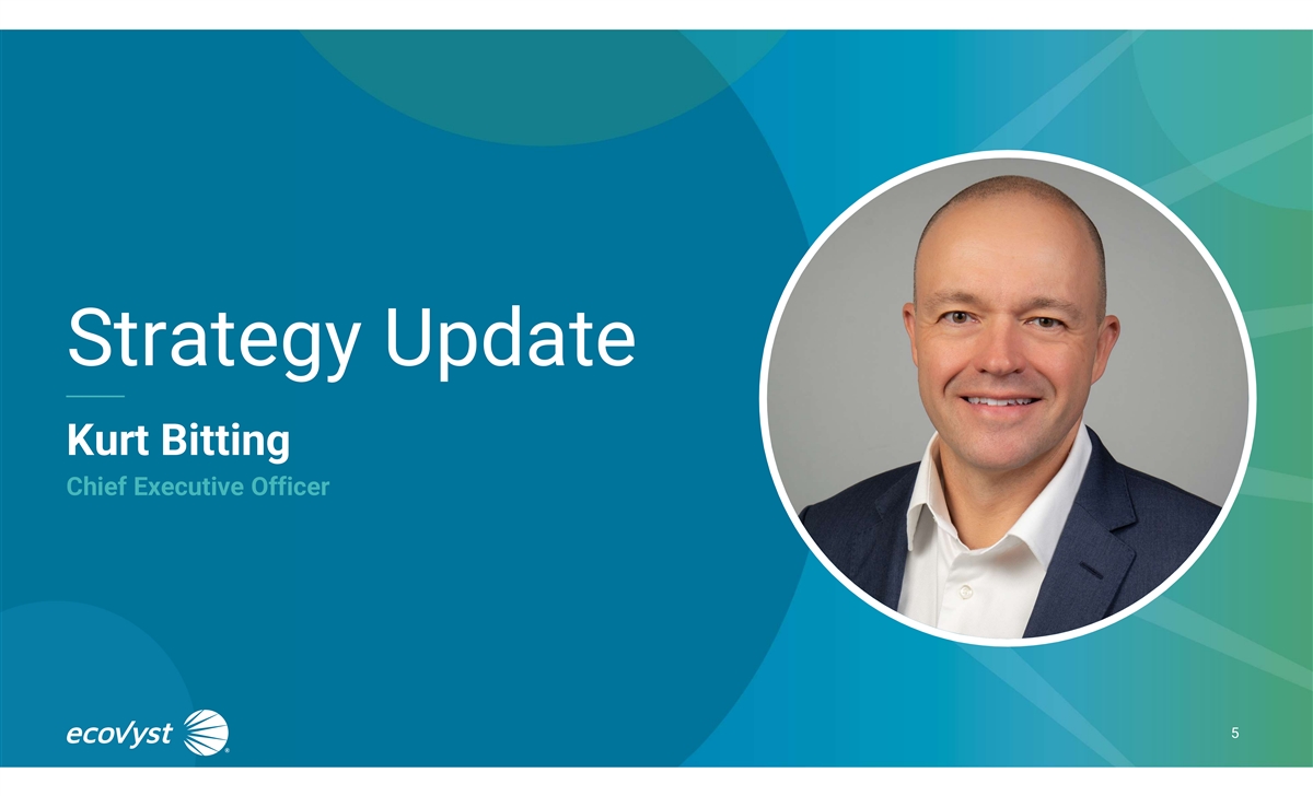 Kurt Bitting, CEO More than 25 years of experience Originally joined the company in 2006, serving in Ecoservices, at the time a division of Rhodia, as Sulfur Products Manager, Business Director and Vice President Played a key role in Ecoservices’ divestiture from Solvay and eventual merger with PQ Corp Appointed President, Ecoservices in 2019 Promoted to Chief Executive Officer in April 2022 4