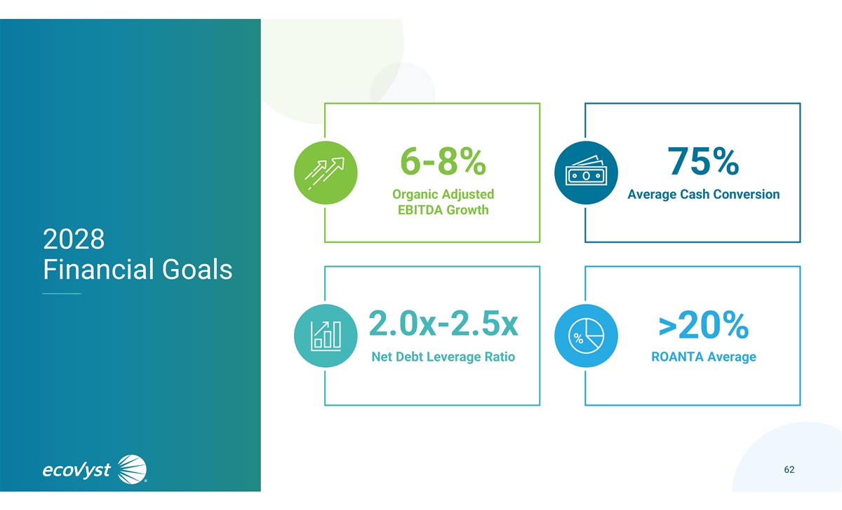 6-8% 75% Organic Adjusted Average Cash Conversion EBITDA Growth 2028 Financial Goals 2.0x-2.5x >20% % Net Debt Leverage Ratio ROANTA Average 62